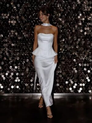 SoDigne Mermaid Satin Boho Wedding Dresses Sleeveless Strapless Appliques Bridal Dress Long Wedding Gown Custom Made